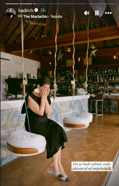Nakon toga u priče je dodala još jednu fotografiju s istog mjesta, na kojoj sjedi na ljuljački, a lice je sakrila rukama. Priznala je da na slici plače, ali ako fanovi misle da je nesretna, onda su u zabludi. “Da ne bude zabune, ovdje plačem, ali od smijeha“, napisala je.
