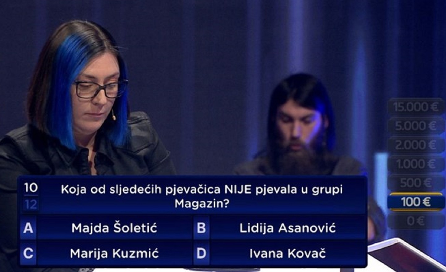 “Ovo znam jer im se pjesma zove American Idiot”, odmah je znala Petra. Odgovorila je točno A i sa 100 skočila na 500 eura.