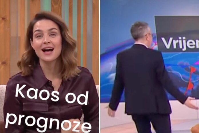 Naime, u simpatičnom videu koji je objavljen na službenoj Facebook stranici emisije, a koji su naslovili s ‘kaos od prognoze’, može se vidjeti kako se Vakula zbunjeno prešetava po studiju šireći ruke, a voditeljica Doris Pinčić Guberović pojasnila je gledateljima kroz smijeh što se događa.