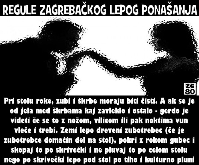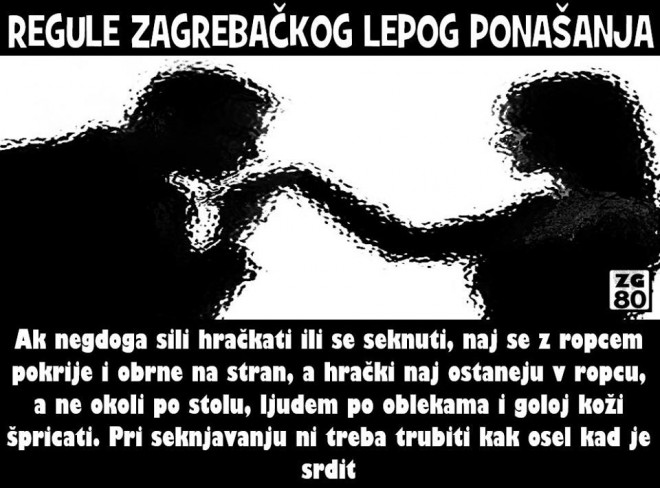 Zagrepčani su uvijek bili gospoda finih manira, a da je tome tako dokazuju i ove “regule zagrebačkog lepog ponašanja”. Napisane na starom purgerskom, kakav danas rijetko kad čujemo, ove regule pravi su dašak Zagreba za kojim mnogi potiho pate.
