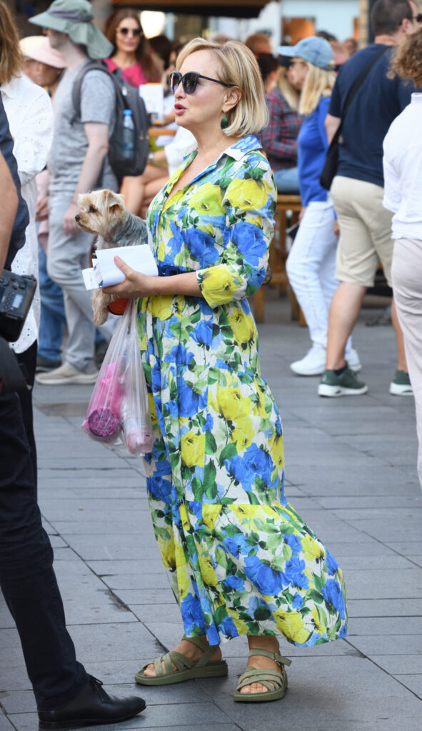 Unatoč teškoj životnoj borbi s opakom bolešću glumica zrači vedrinom i ne skida osmijeh s lica prilikom pojavljivanja u javnosti. Ove je subote dobro raspoložena prošetala zagrebačkom špicom sa svojim kućnim ljubimcem. Odjenula je haljinu s cvjetnim uzorkom.