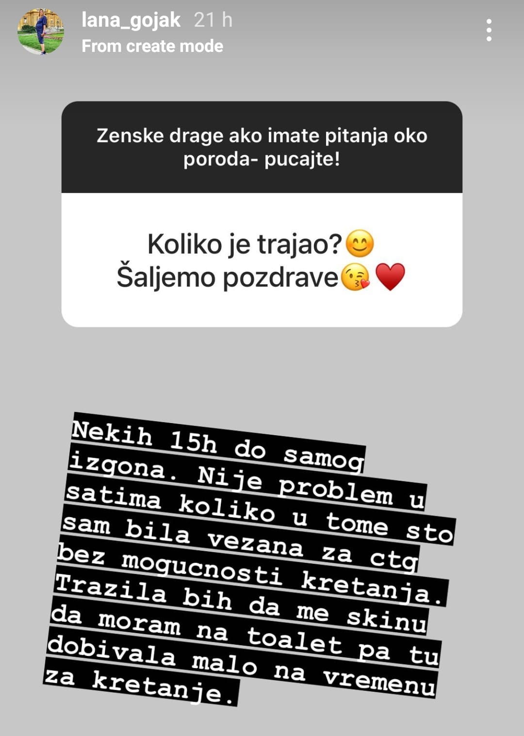Brojni pratitelji su joj postavili pitanja vezana za porod, a mnoge je zanimala zašto je još u bolnici, pa je pojasnila: “Zato što se ispostavilo da mi je CRP jako visok, kao i mojoj curici”.