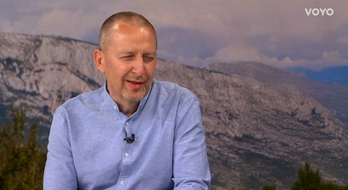 “Od Papuka i Dilj Gore do Biokova do Mosora, nema planine na kojoj nije bio. Na 1831-dan metar visokoj Dinari, na 3086 metara visokom najvišem vrhu Austrije. Sve je počelo s njegovom kćeri, koja se upisala u planinarsku grupu u osnovnoj školi: a sada je svoje pustolovine s planina duhovito opisao na 300 stranica putopisa. I nije mu to prva knjiga: suautor je nekoliko udžbenika iz povijesti, a inače organizira i šahovska natjecanja”, otkrila je poznata voditeljica koja je potom sa zagrebačkim profesorom pričala o jedinstvenom iskustvu planinarenja.