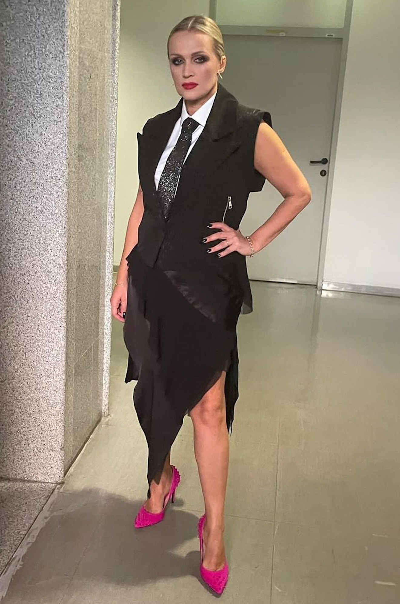 Vanna je, naime, objavila dvije fotografije u kreaciji koju je za nju odabrao Boris Banović široj javnosti poznat i kao ‘Fashion guru’. ‘No hard feelings’, napisala je Vanna pored fotografija na kojima pozira u crnoj haljini asimetričnog kroja upotpunjenoj bijelom košuljom, kravatom i ružičastim cipelama s visokom potpeticom.