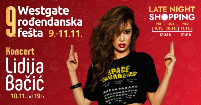 Westgate Shopping City slavi 9. rođendan uz pregršt zabavnog sadržaja za sve uzraste i veliki koncert popularne Lidije Bačić Lille! Od 9. do 11. studenog u Westgateu Vas očekuju brojna iznenađenja koja će rođendansku proslavu učiniti nezaboravnom. U petak 9.11. u najvećoj dječjoj igraonici Kid’s Worldu prvo dječje kino u Hrvatskoj otvara svoja vrata uz mnoštvo zabavnih filmova tokom cijelog rođendanskog vikenda! Zabava se nastavlja jer od 18 sati najmlađi uživaju u pravom „Rođendanskom cirkusu“ uz zabavne igre i ples, druženju s klaunovima i veselim likovima. U subotu 10.11. mali modni zaljubljenici će od 16 sati prošetati pod svjetlima reflektora na velikoj dječjoj modnoj reviji i dobiti brojne poklone, a najmlađe od 17 sati očekuje nezaboravni „Rođendanski karneval“ te zabavna interaktivna predstava „Cirkus je u gradu“. A rođendan nije rođendan bez torte i zato od 18 sati posjetitelji mogu probati veeliku rođendansku Westgateovu tortu, dok će sve zabavljati plesači iz Akrobatskog rock ‘n’ roll kluba Bistra.