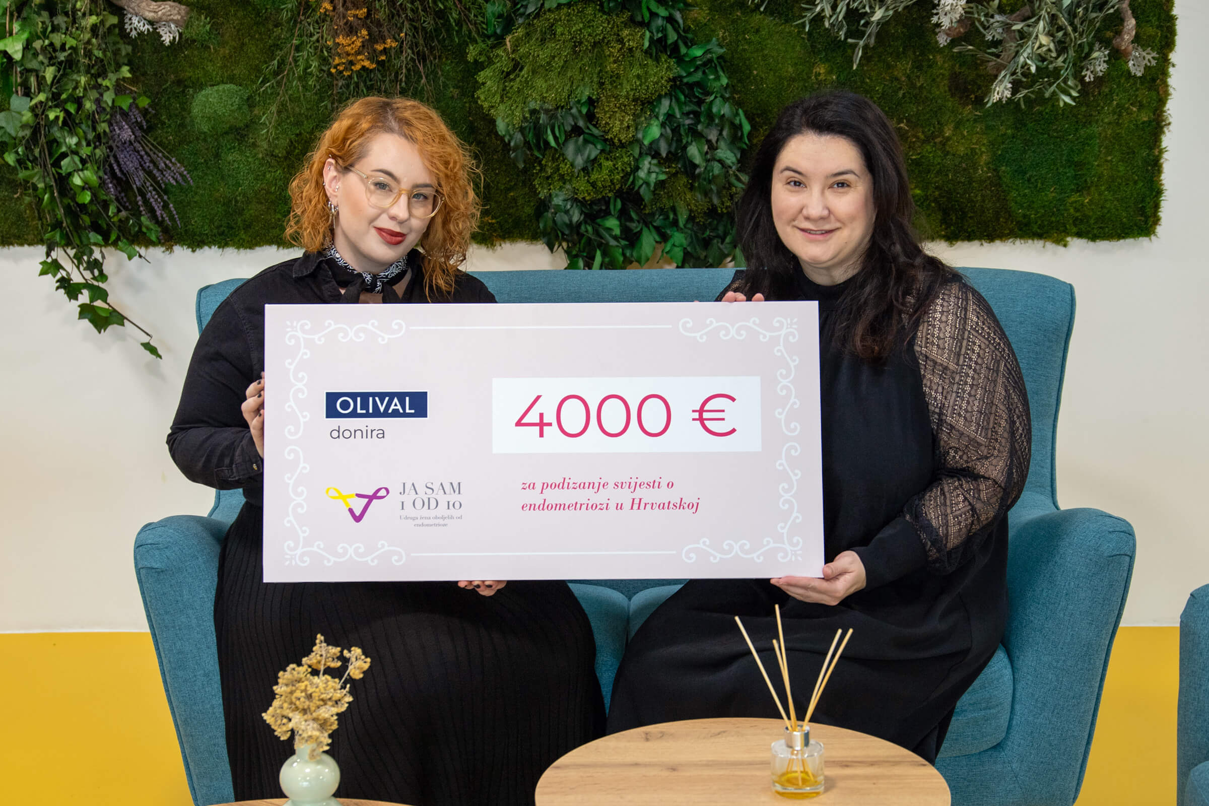 Gospođi Zorici Martić, predsjednici Udruge, ček je uručila Sara Jerman, voditeljica marketinga i razvoja brenda, koja je ovom prilikom podsjetila kako je i ova donacija nastavak Olivalovog društveno odgovornog poslovanja otvaranjem tema koje su zanemarene u javnom prostoru i o kojima se treba više pričati. Jedna od tih tema definitivno je i endometrioza koja pogađa jednu od deset žena, a Olival kao većinski ženski kolektiv iznimno je osjetljiv na sve teme koje se tiču žena. Ističe i da su posebno sretni što se ova suradnja i podrška nastavlja budući da je u 2024. godini Olival donirao 5% prometa ostvarenog u webshopu tijekom vikenda za Dan žena, ali i donirao i proizvode za aktivnosti Udruge.