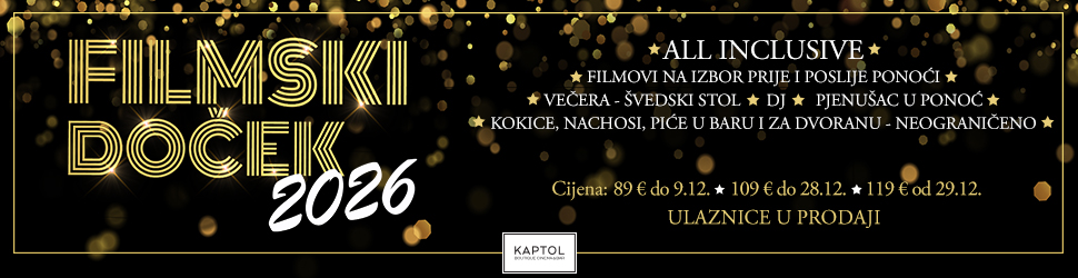 U toplom ozračju elegantnog bara i unikatnih kino dvorana dočekajte 2026. godinu jer vas osim filmova očekuje i DJ-a, švedski stol, neograničeno piće i grickalice, pjenušac u ponoć te prepoznatljiva atmosferu Kaptol Boutique Cinema. Garderoba je besplatna, a parking je 3 sata gratis u garaži Centra Kaptol uz ovjeru parkirne kartice u kinu (napomena: broj mjesta u garaži nije moguće garantirati). Tako da ako niste sigurni na kojoj lokaciji dočekati 2026., ovo je sigurna jedna od najboljih opcija gdje je i setlista šarolika s DJem koji već tradicionalno pušta hitove i plesnu glazbu od 80ih, 90ih pa do danas.
