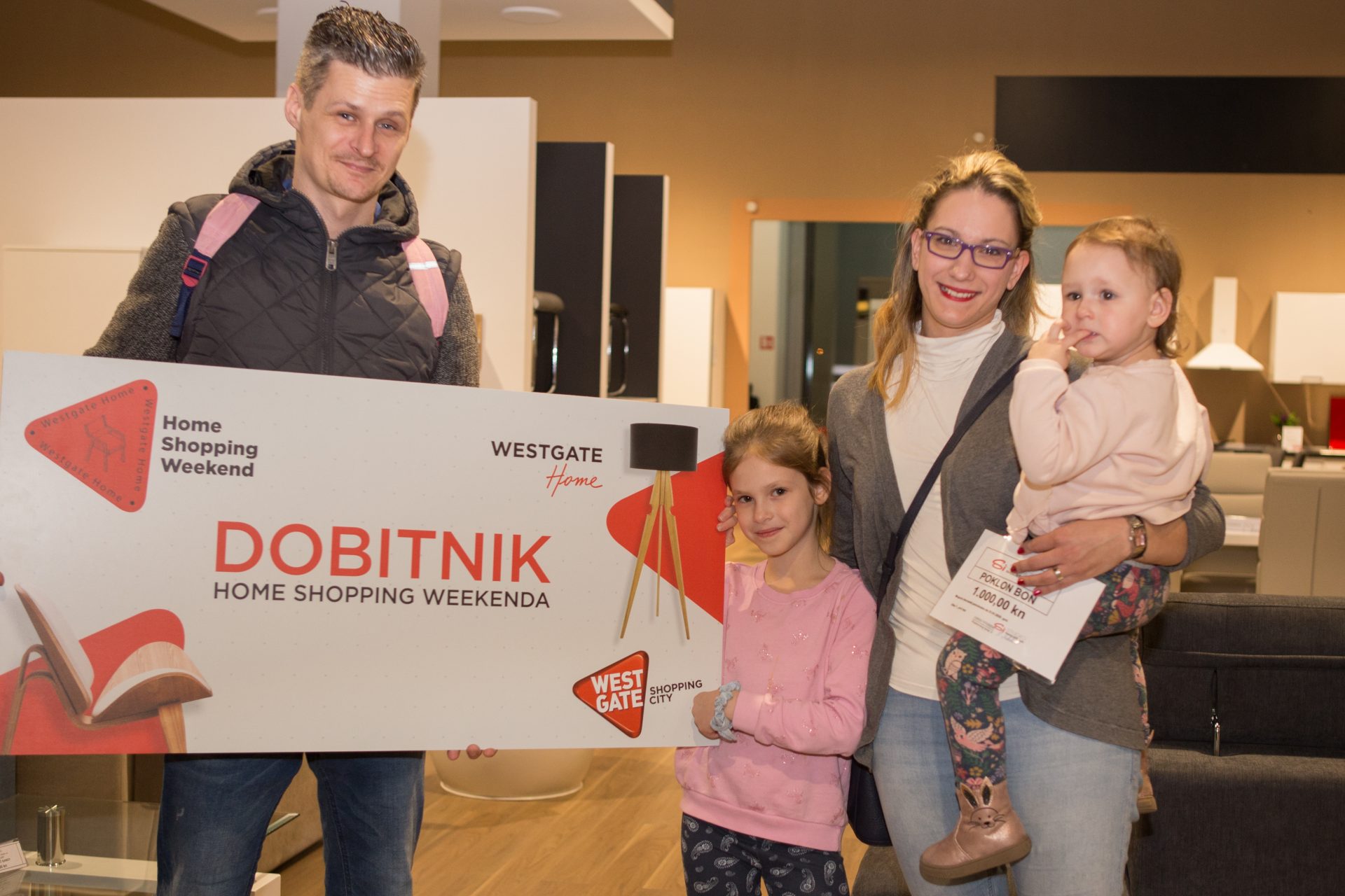 Mališanke su s velikim žarom trčkarale po dućanu i dale sve od sebe u potrazi. Poklon bon u iznosu od 1000 kuna, dar SI Studija namještaja, iznimno je razveselio cijelu obitelj, te su odmah pojurili u kupnju novog trosjeda za dnevni boravak.