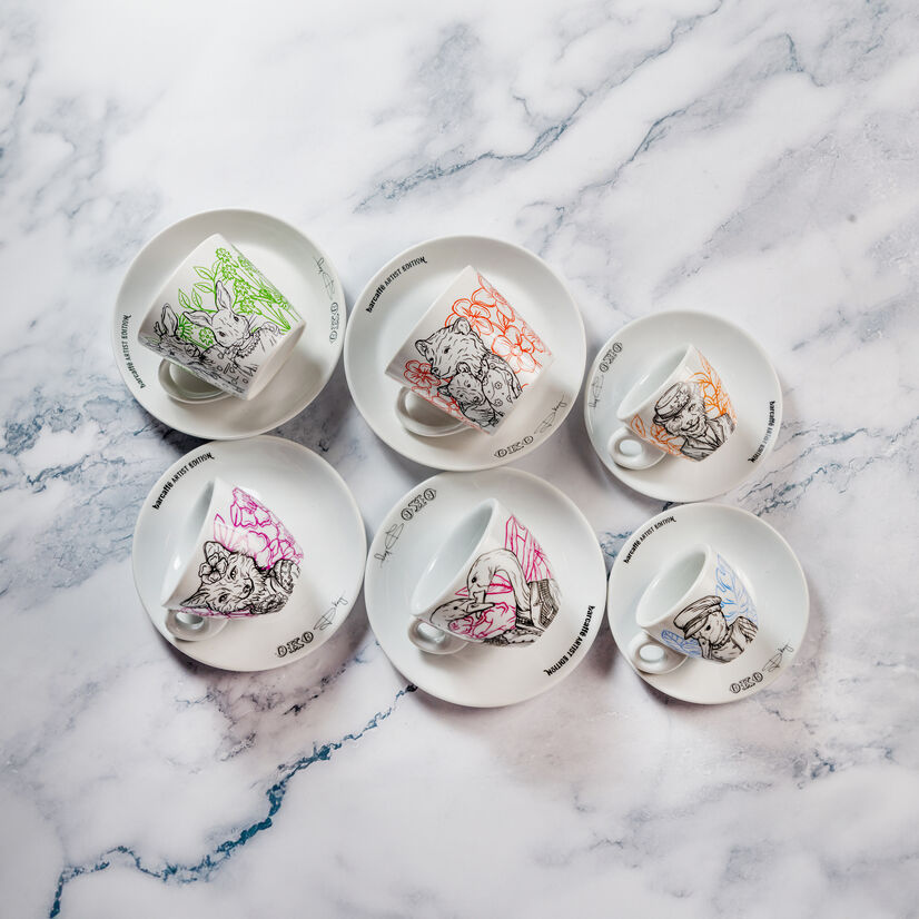 Ovogodišnja kolekcija Artist Edition by OKO x Đura Kelj sastoji se od šest šalica od kojih svaka nosi svoju priču i vodi nas u čarobni svijet gdje se svatko može poistovjetiti s bajkovitim likovima i pronaći svoj omiljeni motiv na šalici. Rezultat su mali uporabni predmeti koje ne samo da unose umjetnost u svakodnevicu, već omogućuju da se svakim gutljajem kave približimo nečem dubljem, snažnijem i čarobnom.