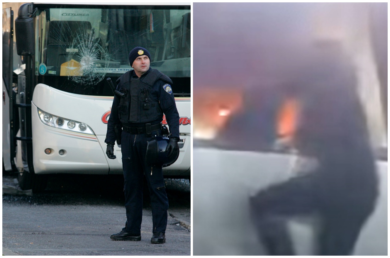 Skupina od 30-ak zamaskiranih huligana napala je autobus koji je prevozio navijače tako što su u njega bacili zapaljene baklje koje su izazvale su požar. Uslijedile su dramatične scene u kojima gostujući navijači nastoje pobjeći iz dima i vatre. Neki su skakali iz zapaljenog autobusa, a sve se zbivalo na raskrižju Avenije Dubrovnik i Ulice SR Njemačke.