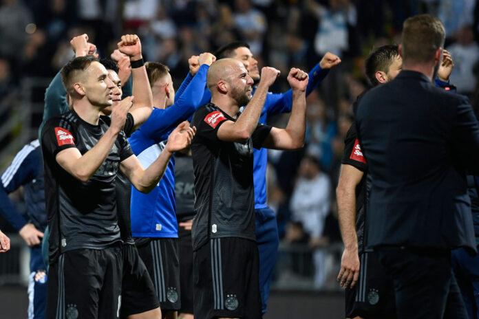 Nakon slavlja u derbiju na Rujevici nogometašima zagrebačkog Dinama otvorio se put do osvajanja novog naslova hrvatskog prvaka. Tri kola prije kraja Dinamo ispred drugoplasirane Rijeke ima četiri boda prednosti, a ako im se rezultati poklope titulu bi mogli osigurati već za vikend.