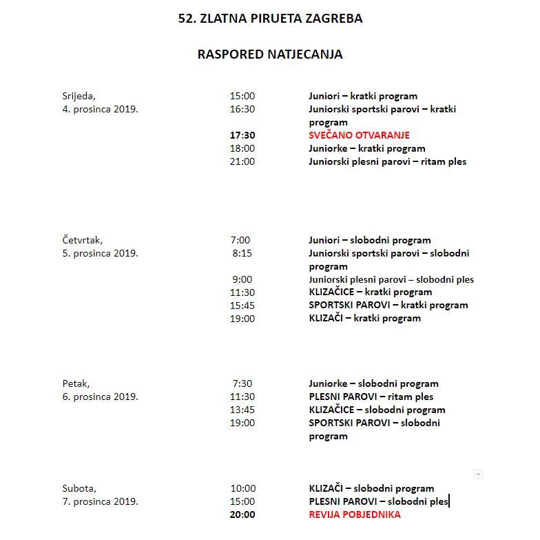 Sve je spremno za početak najstarijeg natjecanja u svijetu umjetničkog klizanja, 52. Zlatnu piruetu Zagreba koja će od 4. do 7. prosinca okupiti rekordni broj, više od 200 klizačica i klizača iz 38 zemalja svijeta.