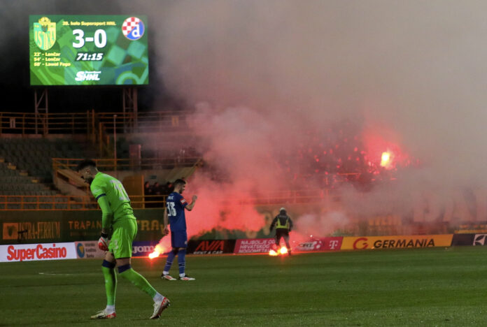 U jednom trenutku navijači Dinama započeli su bakljadu te je velika količina baklji završila na terenu, zbog čega je utakmica zaustavljena na dvije minute.