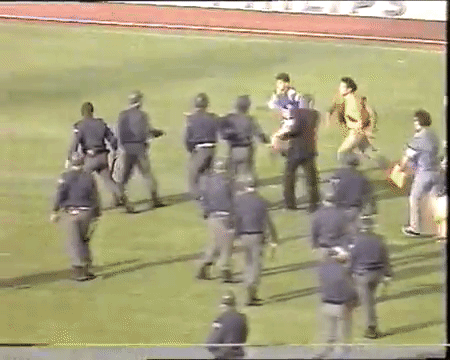 Milicija je usput pendrecima dobro namlatila BBB-ovce, a nasilje srpskih navijača i milicije na BBB-ovcima više nije mogao gledati Zvone Boban. Tada 22-godišnji kapetan Dinama ostao je na terenu dok su njegovi suigrači otišli u svlačionicu i odlučio se sukobiti s milicijom tako što je napao milicajca Refika Ahmetovića.