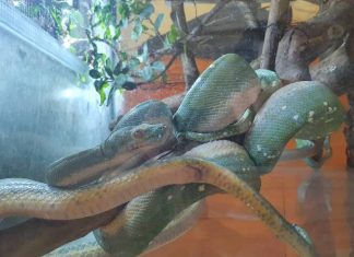 U Zoološkom vrtu Grada Zagreba Valentinovo traje i traje. Mužjak zelenog pitona Johan i njegova partnerica Jaca pare se već šest dana bez prestanka.