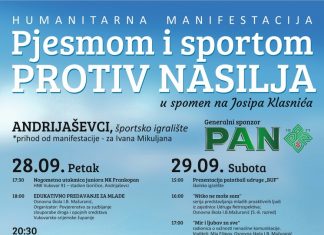 Od 28. do 30. rujna, u Andrijaševcima, mjestu nadomak Vinkovaca održava se 7. po redu humanitarna manifestacija „Pjesmom i sportom protiv nasilja u spomen...