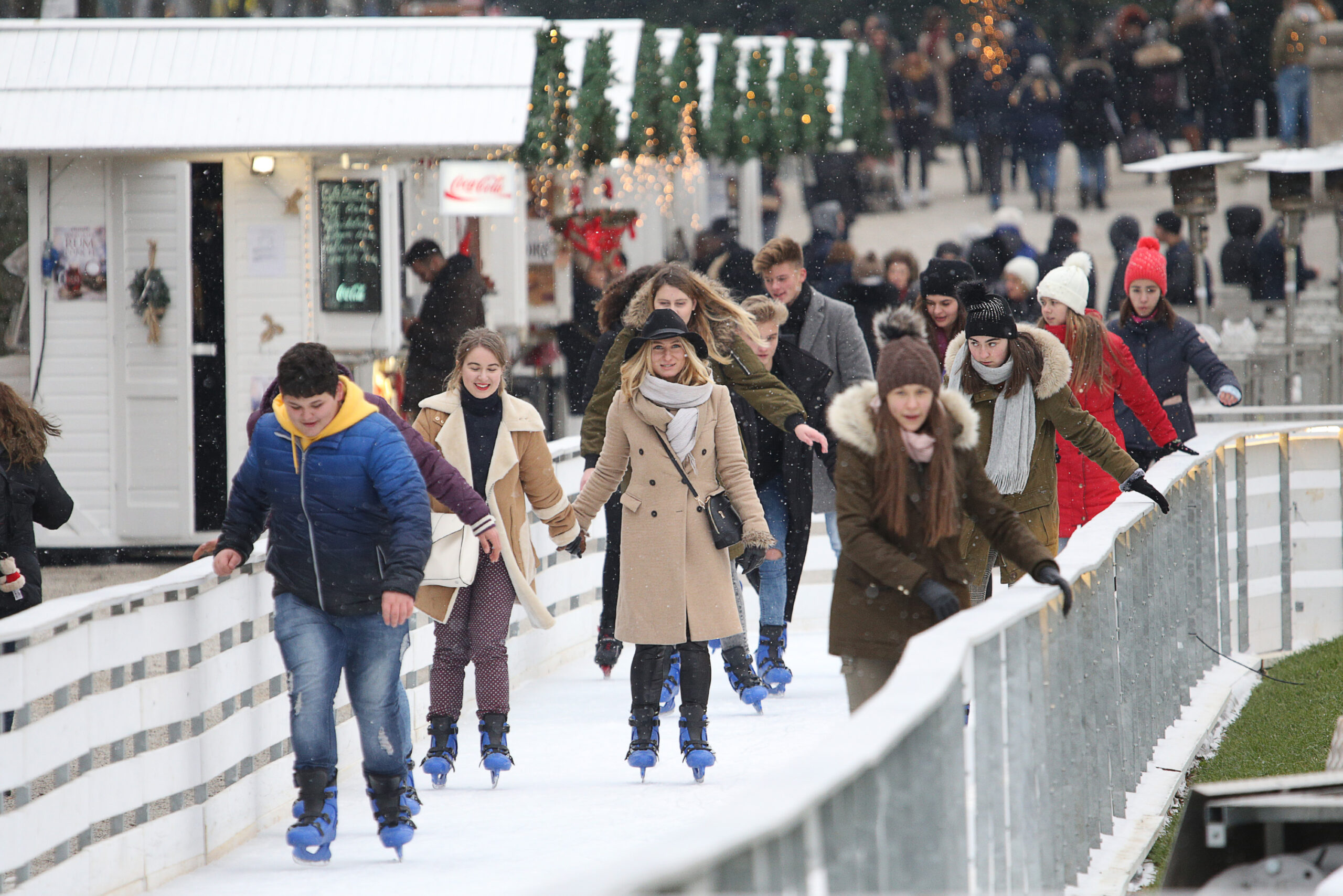 Klizanje ispred veličanstvenog pročelja Umjetničkog paviljona, popraćeno milijardom lampica i prigodnom božićnom glazbom nezaobilazan je i jedinstven doživljaj u ovom dijelu Europe.