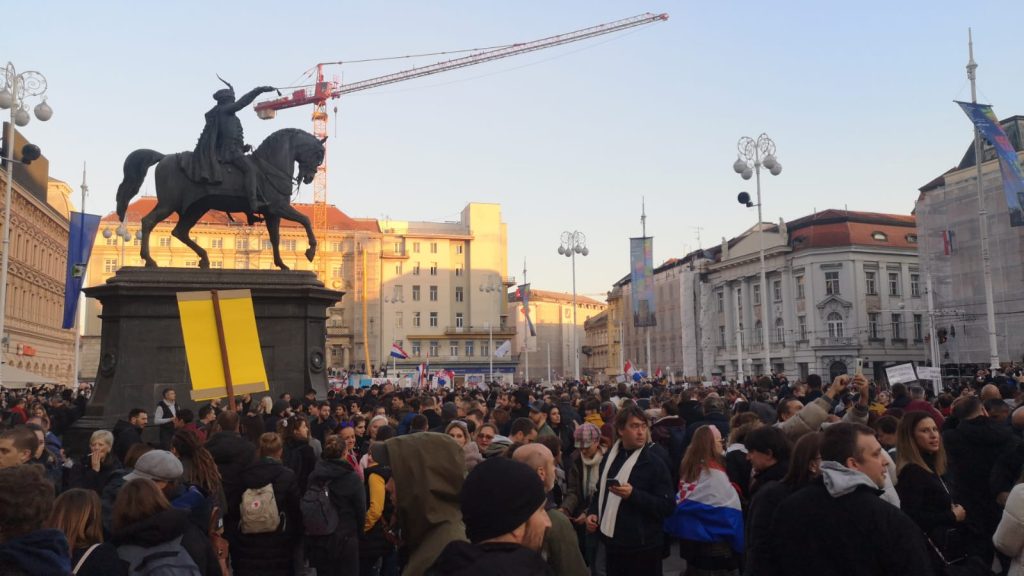 Nezadovoljni građani okupili su se na dvije lokacije. Prva skupina sastala se na Trgu žrtava fašizma, ispred inicijative “Svjetlo protiv mraka”. Vikali su: Izdaja, HDZ lopovi, Ne damo djecu. Automobili trube u znak podrške. Krenuli su prema Zvonimirovoj, gdje su zaustavili i tramvajski i automobilski promet.