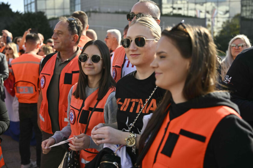Ispred Nacionalne sveučilišne knjižnice okupili su se radnici hitne medicine, ali i medicinski djelatnici drugih zdravstvenih odjela kako bi svojim kolegama izrazili podršku.