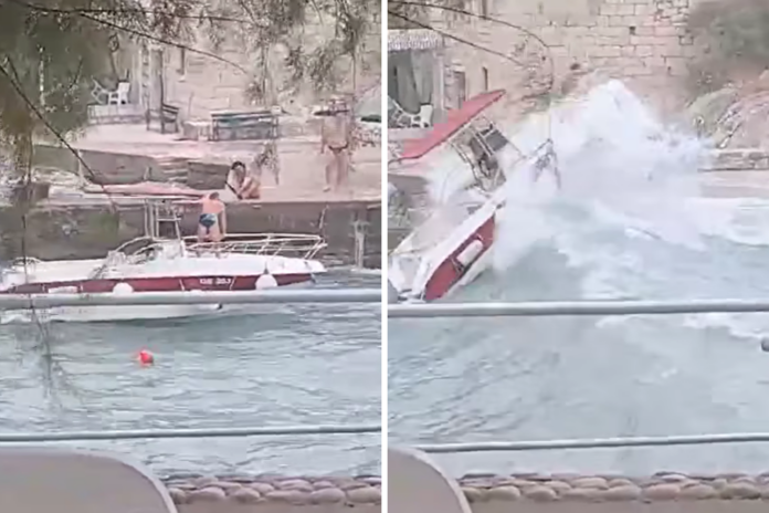 Dramatična je snimka objavljena na Facebook stranici Pelješac, a zasada je još uvijek nepoznato što je muškarac radio na brodici s obzirom na to da se na videuu jasno vidi da je gliser bio privezan.