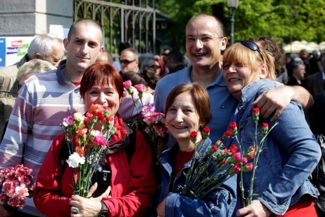 Gradonačelnik Milan Bandić građanima dijelio grah na Maksimiru, a dame je uveseljavao dijeleći crvene karanfile.
