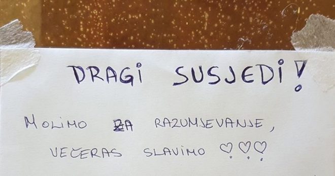 Susjedima, naravno, pozivanje policije nije bilo niti na kraj pameti, nego su na poruku dopisali svoje čestitke kojima se ovim putem i mi pridružujemo.