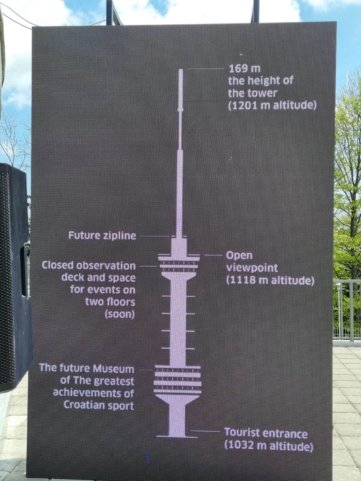 U najavi za naredne mjesece i godine su i brojni drugi sadržaji poput stijene za penjanje u podnožju tornja, zipline s vrha tornja, rotirajući bar, pa sve do muzeja čokolade i najvećih uspjeha hrvatskog sporta.