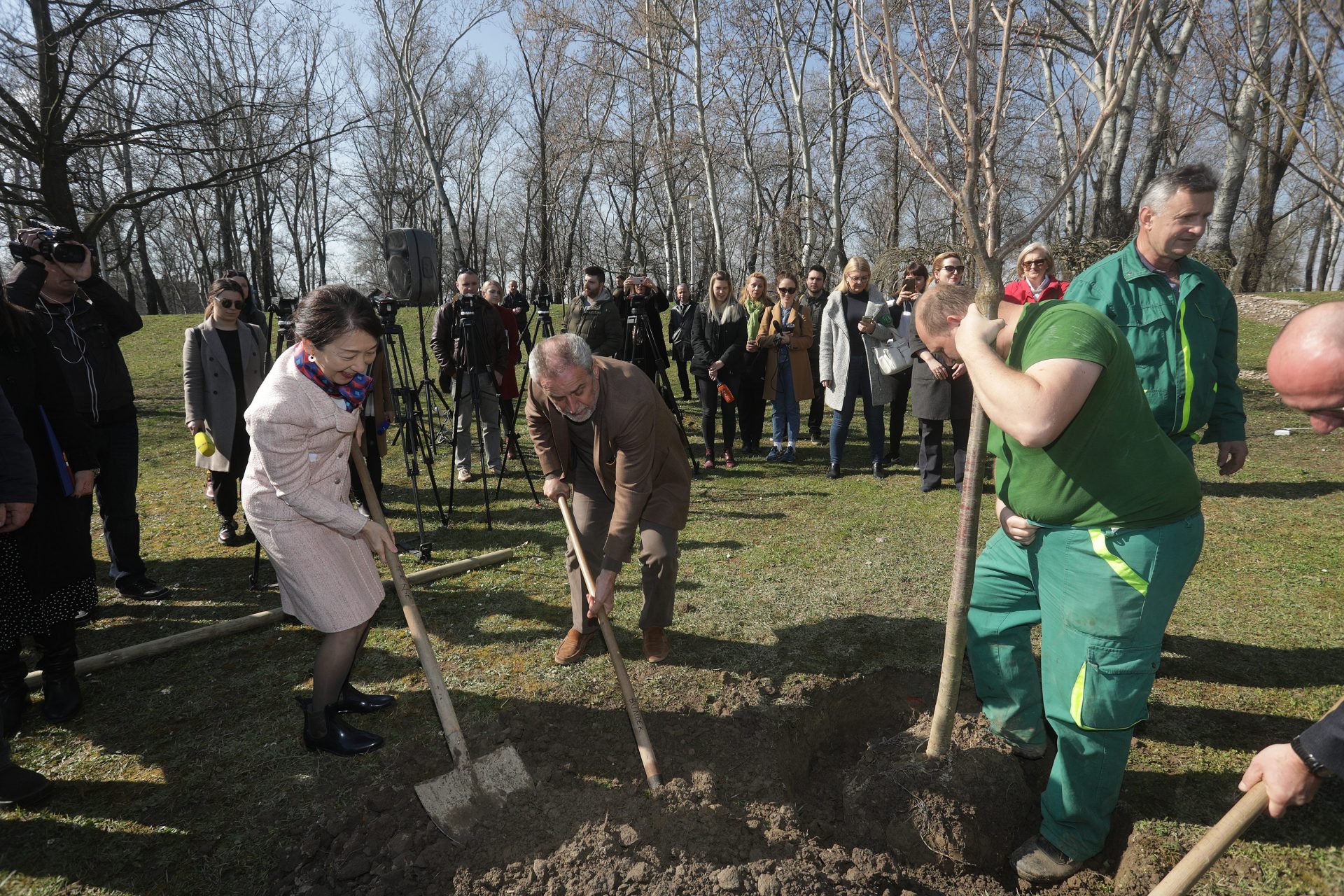Zagreb se danas grije na čak 13 stupnjeva, a lijepo vrijeme odlučio je iskoristiti i gradonačelnik Milan Bandić koji je s veleposlanicom Japana u RH Nj.E. Misako Kaji, u društvu direktora JTI Hrvatska Ltd. i Toyote Croatia, Siniše Trbojevića i Krešimira Bage te predsjednika Hrvatsko-japanskog društva, Ivana Slade, u postojećem Sakura parku na jezeru Bundek posadio pet japanskih sakura trešanja i pet crvenih javora.