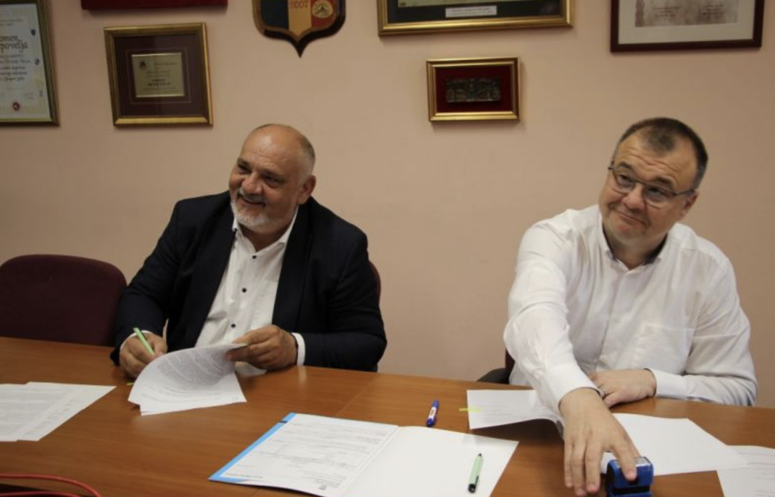 Gradonačelnik Dugog Sela Nenad Panian i direktor Vodoopskrbe i odvodnje Zagrebačke županije d.o.o. Tomislav Masten danas su potpisali kupoprodajni ugovor za nekretninu, zgradu bivšeg DUKOM-a u Zorićevoj ulici, koju će Grad preurediti i prenamijeniti za potrebe Dnevnog centra za starije osobe.