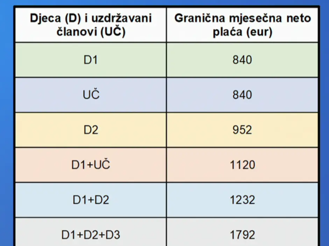 Važno je napomenuti da uzdržavani članovi ne smiju imati godišnja primanja veća od 3360 eura. Taj iznos uključuje prihode od rada preko student servisa, kamate, dividende i napojnice, ali stipendije nisu uračunate.