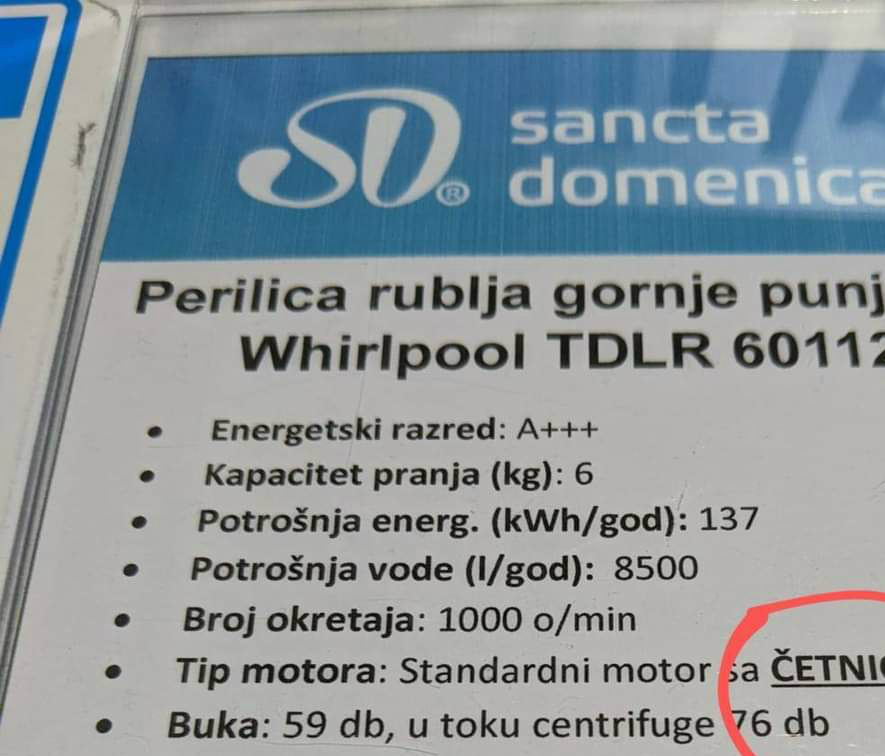 Ovog puta dolazi iz trgovine Sancta Domenica. Pogreška se nalazi na opisu perilice rublja.
