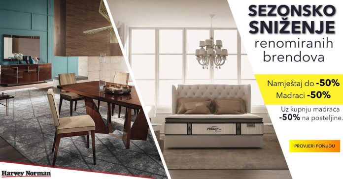 Harvey Norman nudi nevjerojatno sniženje renomiranih brendova. Iskoristite nevjerojatnu ponudu do 50 posto popusta na asortiman namještaja. Za vas su pripremili i madrace vrhunske kvalitete za 50 posto popusta te uz kupnju madraca izaberite i predivnu posteljinu za 50 posto popusta od redovne cijene. Detaljnu ponudu pogledajte na njihovoj stranici Harvey Norman.