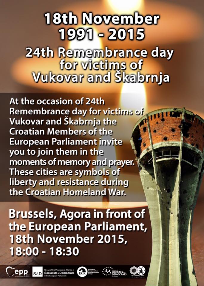 “Povodom obilježavanja Dana sjećanja na žrtve Vukovara i Škabrnje, hrvatski zastupnici u Europskom parlamentu pozivaju Vas na zajedničku molitvu i paljenje svijeća, 18. studenoga 2015. u 18 sati ispred Europskog parlamenta.”, poručio je Andrej Planković.