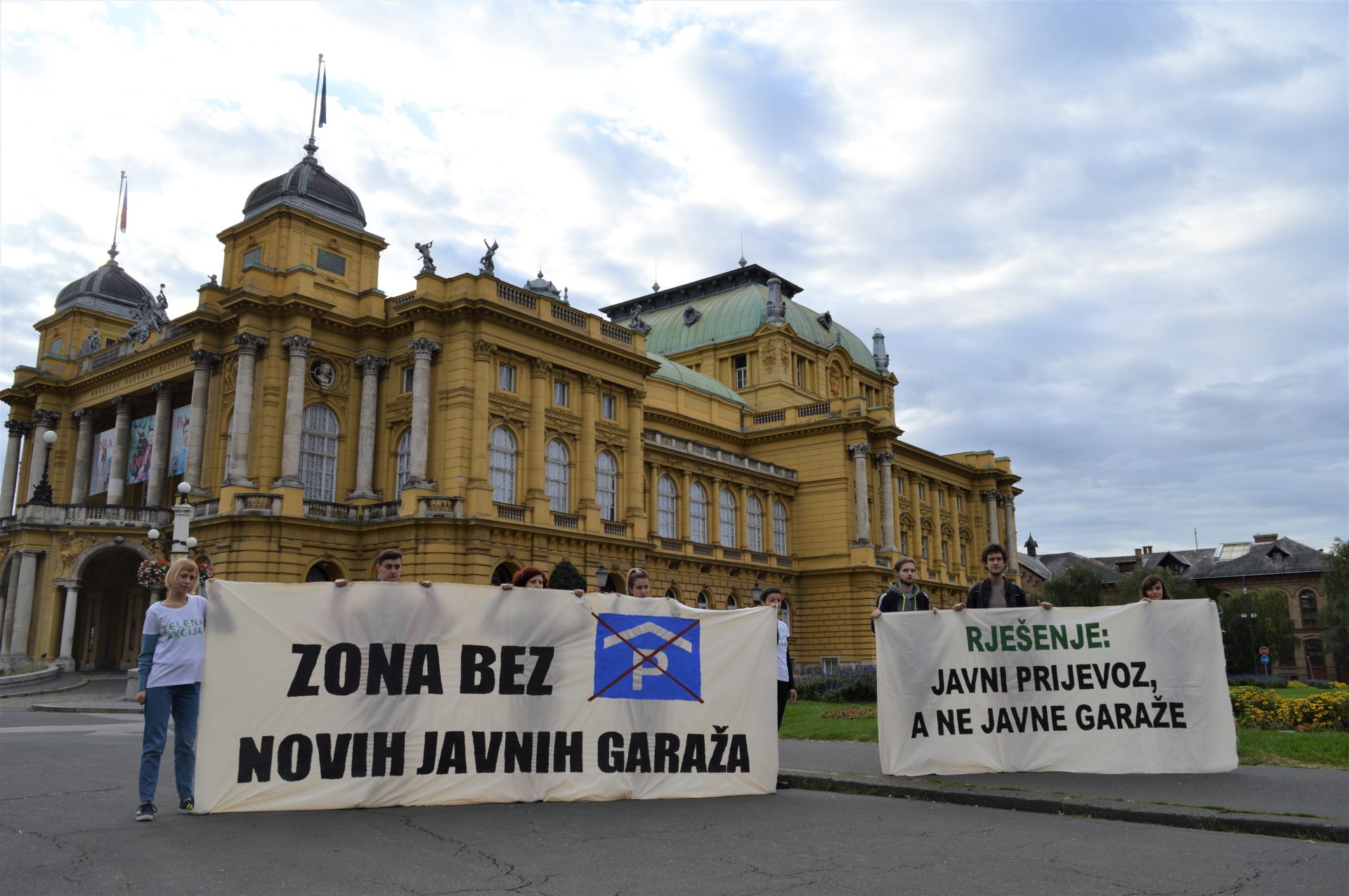 Javni prijevoz, a ne javne garaže! – poručili su članovi Zelene akcije ispred Hrvatskog narodnog kazališta u Europskom tjednu mobilnosti u kojem se potiče korištenje javnog prijevoza. Podsjetili su da je gradonačelnik Milan Bandić više puta rekao da novu javnu garažu želi izgraditi ispod HNK dok ignorira lokaciju u Klaićevoj gdje se garaža planira već 15 godina.
