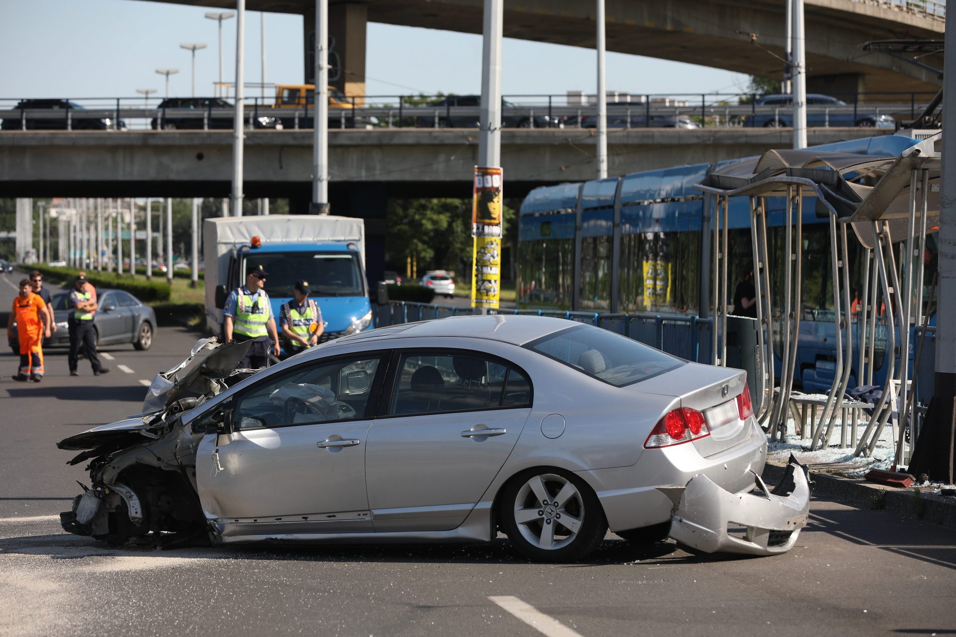 Naime, sveučilišni profesor koji je u trenutku nesreće imao 2,1 promila alkohola u krvi spuštao se s petlje i dolaskom do raskrižja nije vozilo držao na sredini prometne trake pa je zahvatio rub kolnika i nastavio se nekontrolirano kretati i naposljetku zabio u tramvajsku stanicu.