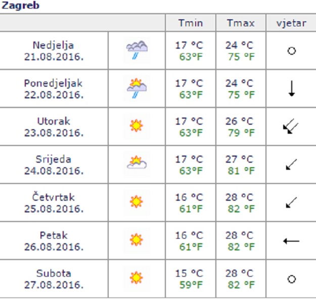 DHMZ također prognozira kišovit početak tjedna. Kiša će najviše padati na kopnu, dok će u Istri i Dalmaciji prevladavati relativno suho, sunčano i toplo vrijeme.