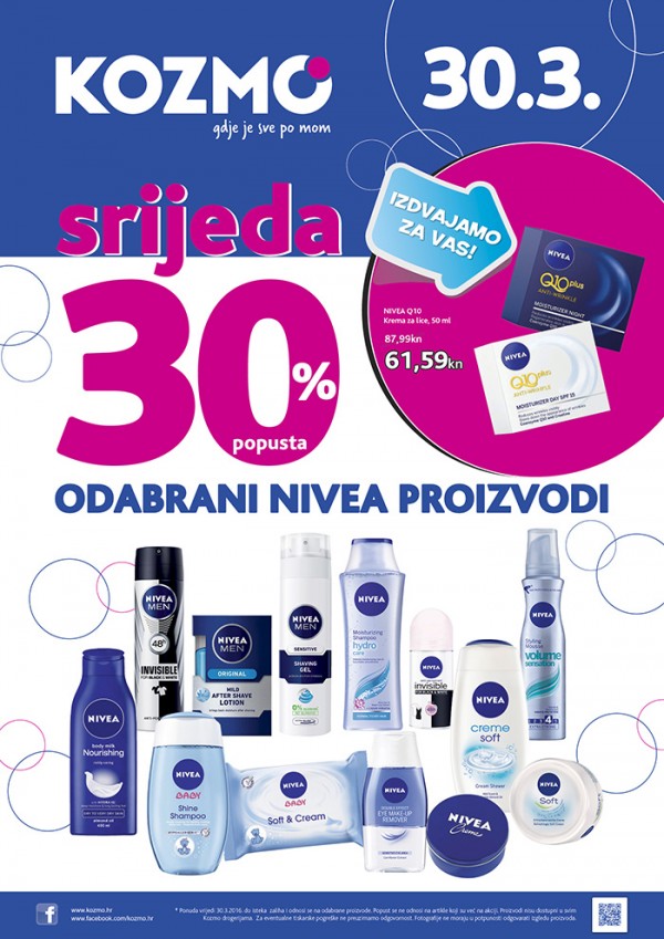 KOZMO IMA SJAJNU PONUDU: Ove srijede odabrani Nivea proizvodi sniženi su 30 posto Objavio Ana Međugorac - Srijeda, 30. ožujka 2016. u 14:27 Kozmo Kozmo akcije srijedom doista se isplate. I ovu srijedu u svom najbližem Kozmu potražite odabrane Nivea proizvode po 30 posto nižim cijenama i obogatite svoju higijensku torbicu. Kozmo Facebook Twitter Email Print