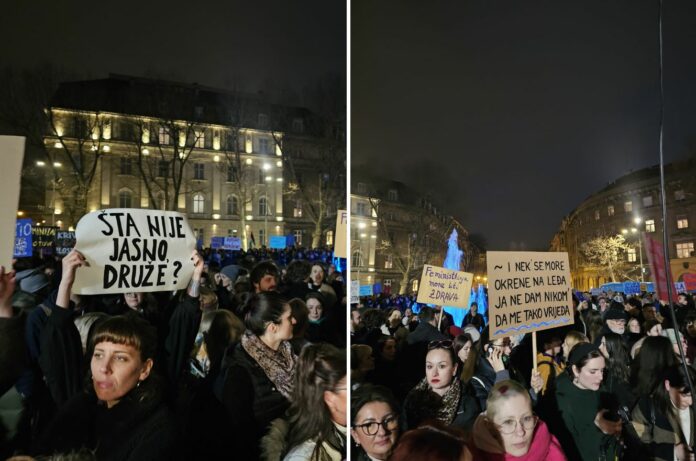 “Večeras se Zagrebom maršira u ime onih koje su nam kroz povijest pokazale kako se stvara pokret, u ime prijateljica koje pružaju osjećaj sigurnosti u izlascima, u ime žena koje hrabro pričaju o nasilju u fakultetskim kabinetima i ginekološkim ordinacijama, u sudnicama, na ulicama i u četiri zida, u ime radnica likvidiranih i stečajnih poduzeća koje ustrajno traže isplatu desetljećima ignoriranih dugova.