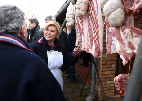 I dok se Jadranka Kosor bori s ratobornim Busovima, naša predsjednica, Kolinda Grabar-Kitarović, uživa na svojoj turneju po Slavoniji. Na svom Facebook profilu objavila je niz fotografija na kojima, vjerovali ili ne, sudjeluje na kolinju. Uz fotografije na kojima pravi kobasice, pozira sa špekom i kuha čvarke, predsjednica je objavila kako je “Hrvatska tradicija očuvana i u Europskoj uniji”. Predsjednicu smo već navikli gledati u raznim izdanjima. Bojila je stan, lovila ribu, vozi kombajn i lijepi pločice u crkvi, ali nismo očekivali da ćemo ju vidjeti i na kolinju.