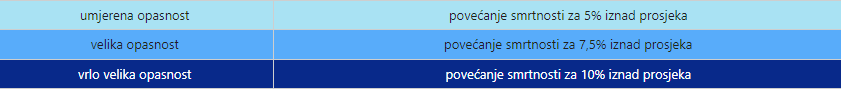 “Kriteriji za pojavu hladnih valova koji mogu biti opasni za zdravlje ljudi određeni su pomoću podataka smrtnosti i podataka temperature zraka u razdoblju 1983-2008. Stupanj opasnosti određuje se prema stupnju povećanju smrtnosti: