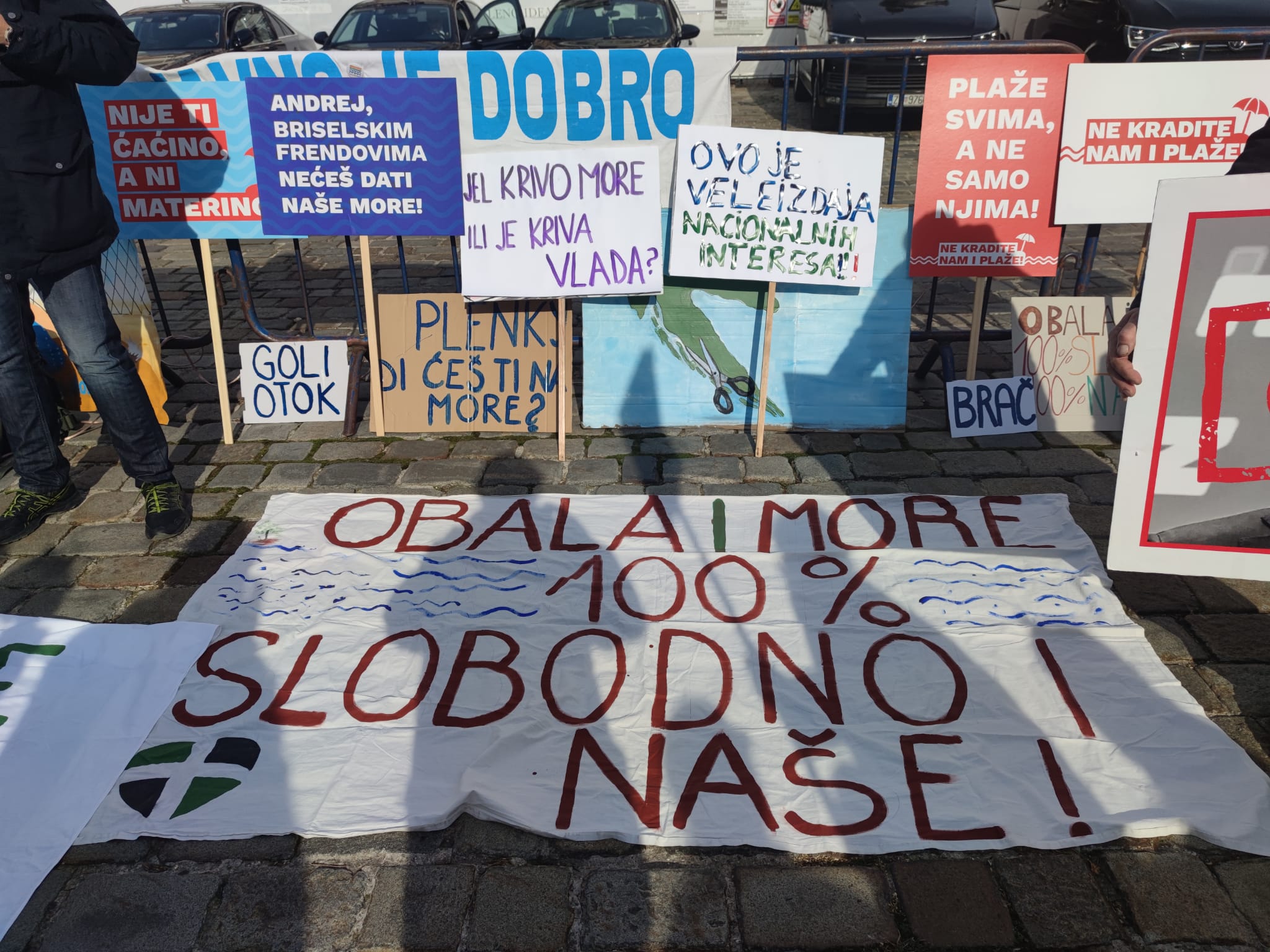 ”I nek je proklet ko mi te ote, rojena valo”, ”Nije ti ćaćino, a ni materino”, ”Ogradite li more, bit će nam još gore”, neki su od naziva na brojnim transparentima koje su prosvjednici donijeli.