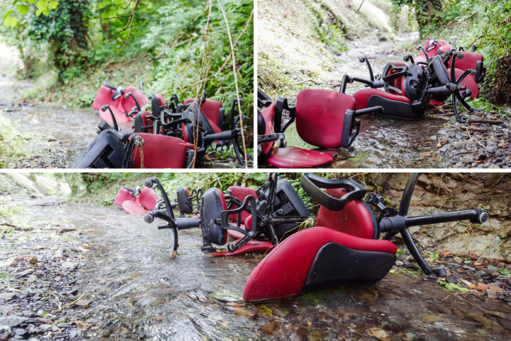 Koliko se može vidjeti na fotografijama, u potok je odbačeno devet crvenih stolica, a prizor je zgrozio brojne šetače i ljubitelje prirode. Čovjek se doista mora zapitati,o čemu je razmišljala osoba koja je napravila ovako nešto, ne samo što zagađuje prirodu, već su morali te stolice smjestiti u vozilo i odvesti ih iz ureda skroz do ulaza u Park Medvednicu i baciti dok nitko ne gleda. Vjerojatno nekada noću.