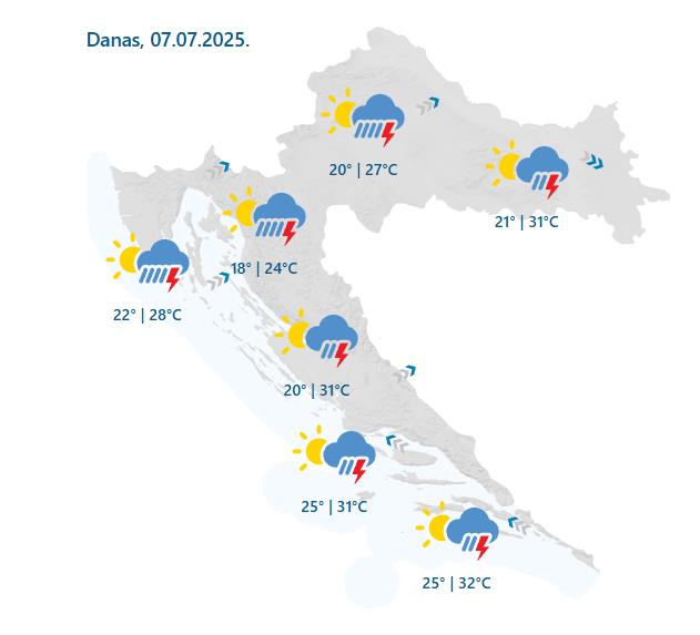 “Za sutra imamo upozorenja od DHMZ za cijelu zemlju. Noćas se nevere očekuju i u Dalmaciji, gdje će biti lokalno snažnih grmljavinskih pljuskova, olujnog vjetra pa i tuče osobito sjevernije.