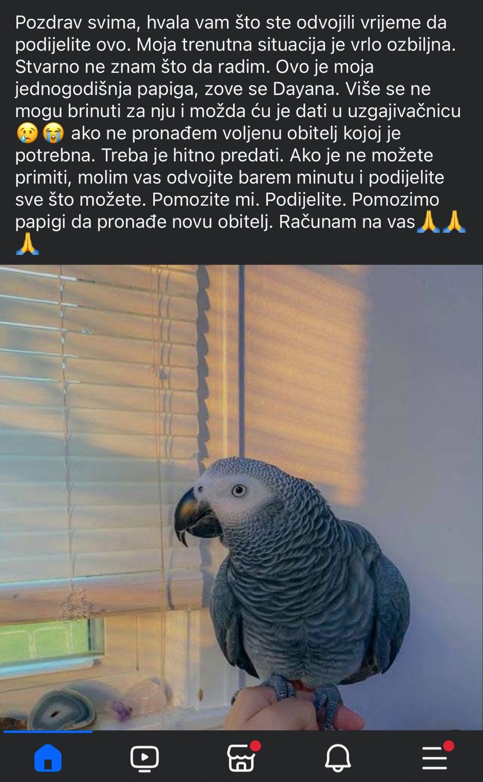 Neobičan slučaj osvanuo je posljednjih dana na društvenim mrežama. Jedan čovjek objavio je fotografije i prepisku s prevarantima koji su ga pokušali nasamariti lukavom pričom. “Želim svima javiti da ova osoba vara ljude tako da je objavila da želi dati papigu na udomljavanje nema vremena. Nakon dopisivanja sam imao sumnju na prevaru i išao malo dublje. Vara tako da ona organizira tvrtku koja šalje životinje na kućnu adresu i da treba poslat paysafecard kao dokaz”, počeo je s upozorenjem te.
