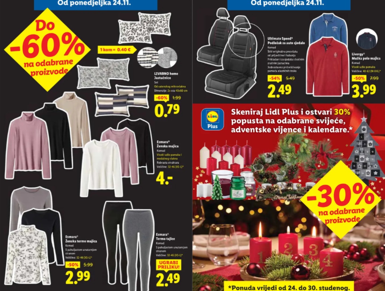 Ženske termo majice Esmara su na akciji od 50 posto i prodaju se po 2,99 umjesto 5,99 eura, a na istom sniženju su i muške polo majice Livergy koje umjesto 7,99 sada koštaju