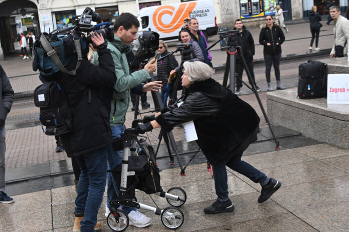 Na njega je odjednom nasrnula starija gospođa s hodalicom, a Pernar je izvadio mobitel i krenuo je snimati.
