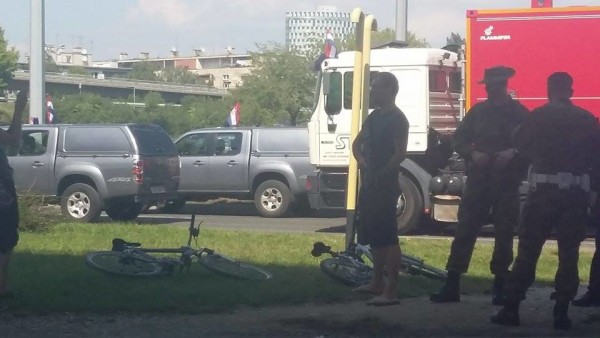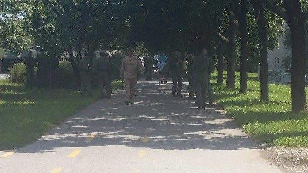 S vojskom surađuje i policija. Policija regulira promet na križanju Vukovarske i Držićeve.