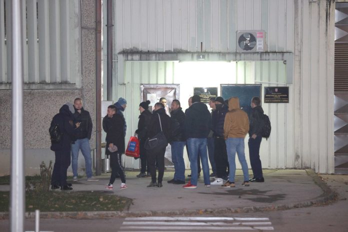 Prosvjednici ističu kako se ne žele testirati i pokazivati covid potvrde prilikom dolaska na posao te ih se stoga nekoliko desetaka okupilo pred zatvorom.