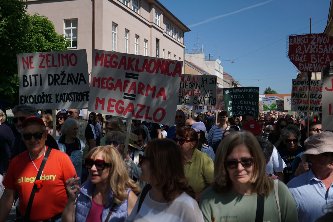 Bitno je sada spasiti Hrvatsku od uništenja mega farmama i klaonicama. Ljudi su jasno rekli veliko NE. Zato tražimo sve nadležne da djeluju odmah i stanu uz svoj narod i njihov dom. Nastavljamo akcije i prosvjede za ustavno pravo na čist zrak, vodu i zemlju jer ne želimo biti smetlište Europe. U lipnju smo pred Vladom”, izjavio je Luka Oman iz Prijatelja životinja.