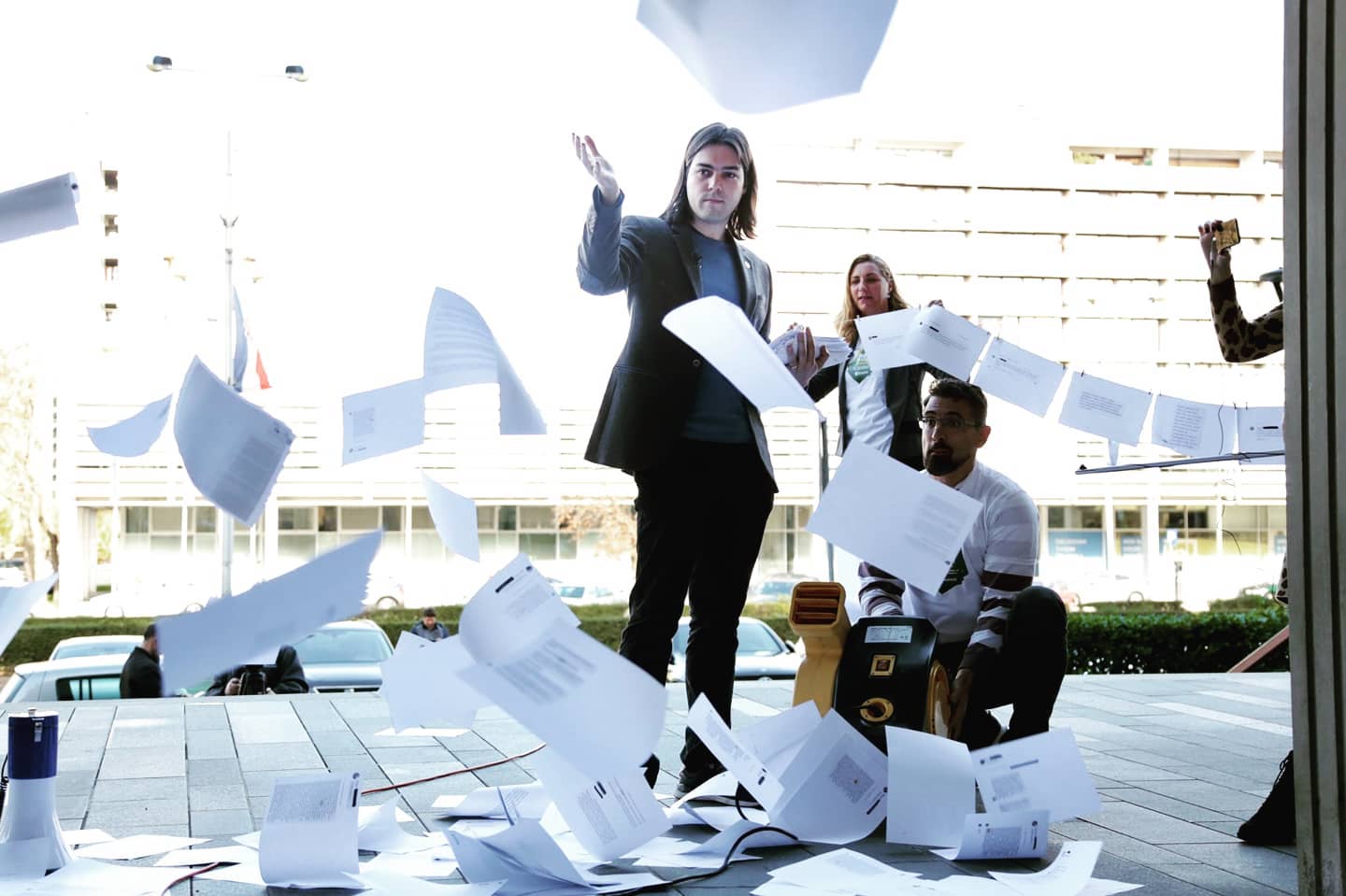 Ivan Vilibor Sinčić, poznat je po znakovitim preformansima. Ovoga puta, ispred zgrade FINA-e u Vukovarskoj ulici bacao je tisuće papira, na kojima su ispisane poruke ovršenih građana.